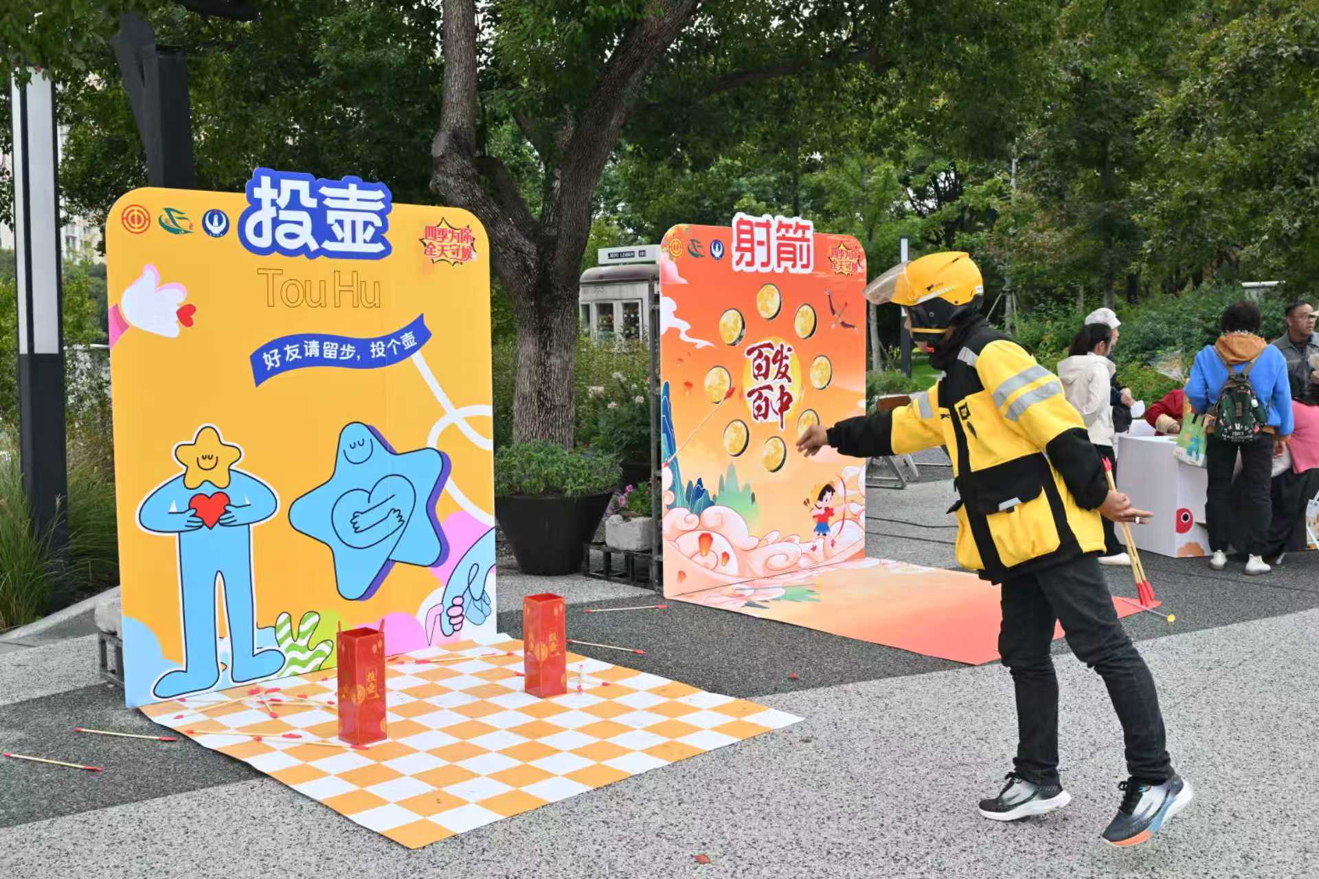 活动现场氛围热烈,普陀区中心医院“胡说正组合”以《坐正健康 Tango》点燃热情,职工踊跃登台献唱;游园区域的传统游戏与非遗体验也吸引众人参与,大家在手捧姜茶的欢声笑语中缓解压力、感受温馨。