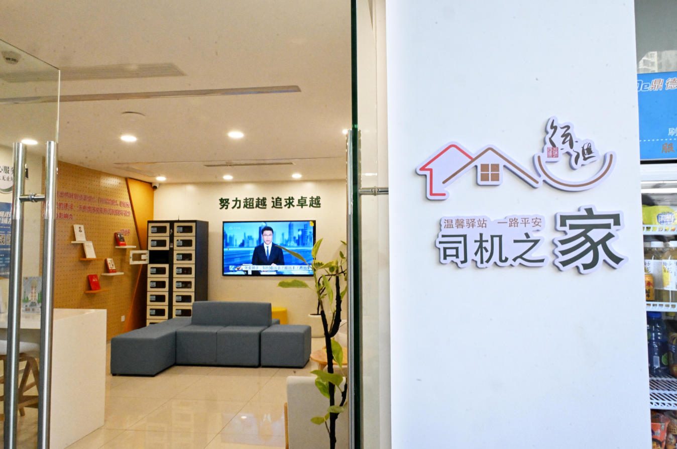 驿站为司机朋友提供停车、充电、休息、淋浴等一站式服务,“赶时间的人”在这里找到了“家”。
