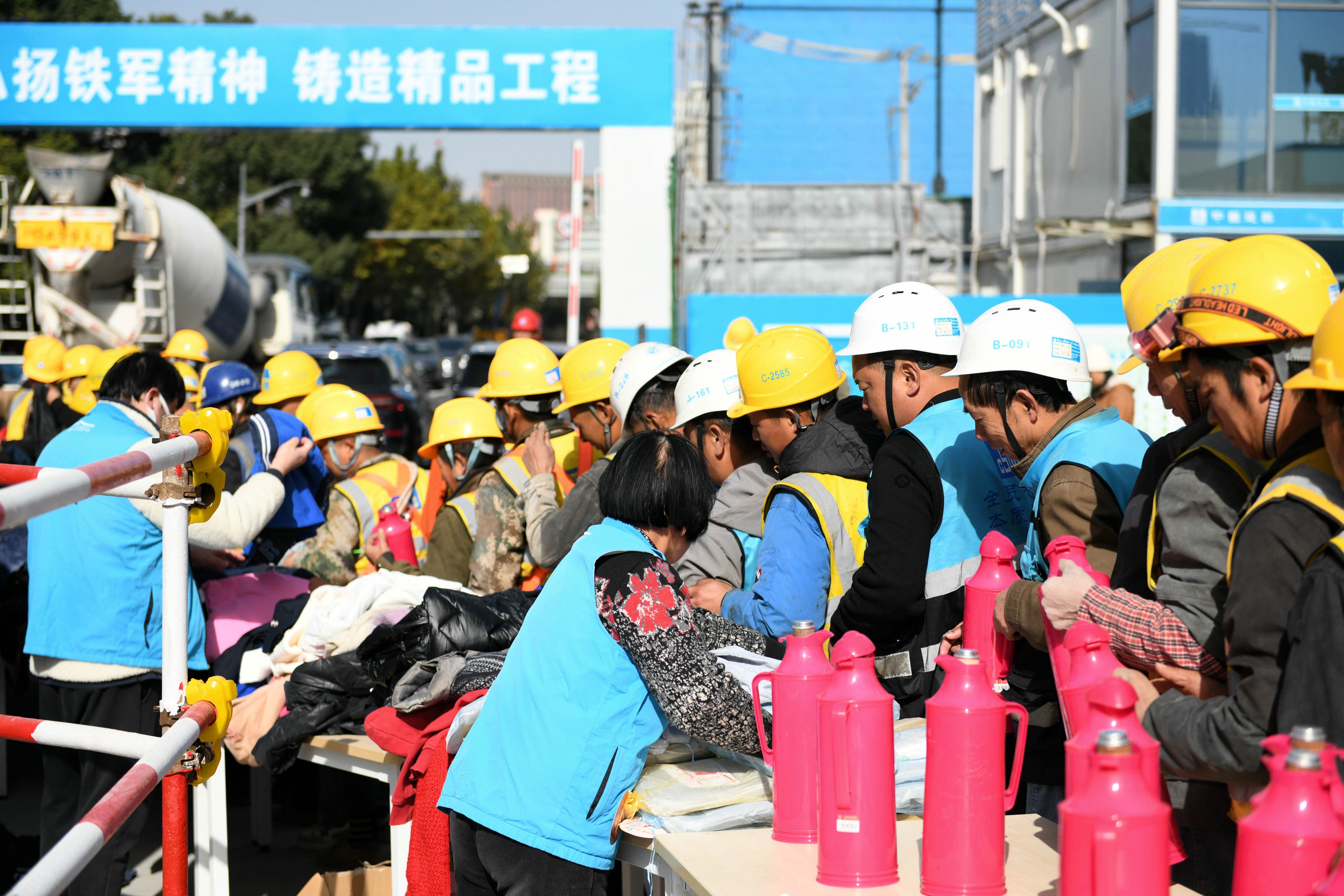 11月25日上午,秋尽冬来,申城气温骤降。为传递企业对一线职工的深切关怀,中建八局上海公司第二分公司工会牵头,联合辖区尚海湾居委会、滨江建设者之家及志仁公益等爱心团体,在徐汇西岸中環D项目开展“冬送温暖”慰问活动,为700余名奋战在施工一线的工友送去暖心物资与关怀。