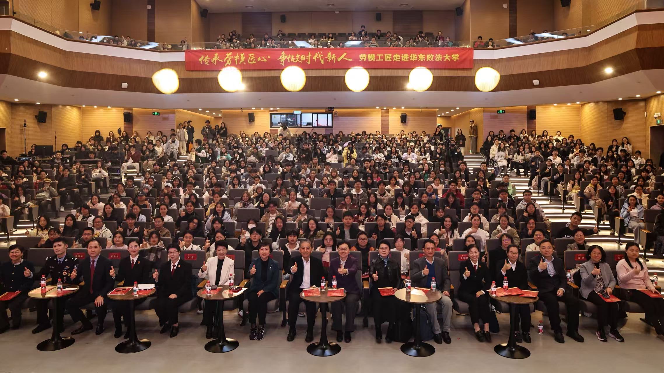 今天下午,由上海市总工会主办、上海市教育工会协办的“传承劳模匠心 争做时代新人”劳模工匠进校园宣讲活动在华东政法大学松江校区举行。四位来自法治领域的劳模先进,与百余名学子面对面交流,一来一往间,法治之光在代际中发扬传承。
