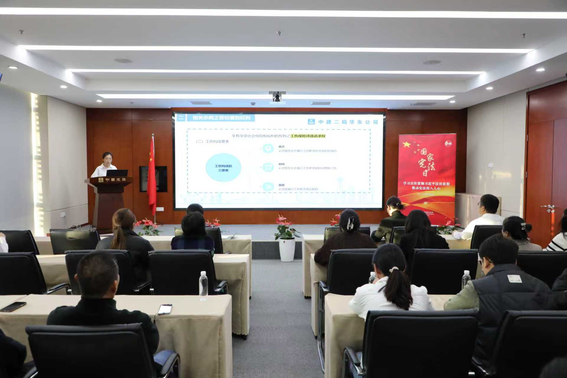 近日,中建二局上海分公司组织开展了“12·4”国家宪法日普法宣传活动,分公司40余名职工参加活动。此次活动旨在进一步提升员工尊法学法守法用法意识,推动宪法精神入脑入心,为建设法治央企夯实根基。