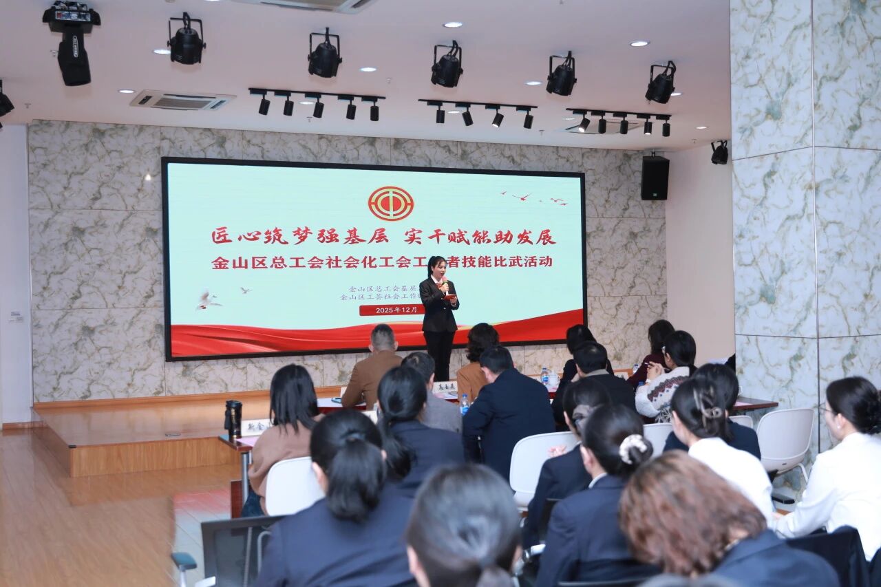 近日,金山区总工会在工人文化宫举办“匠心筑梦强基层 实干赋能助发展”社会化工会工作者技能比武活动。来自全区各街镇(园区)工会的13支参赛队伍齐聚一堂,围绕工会组建、权益维护、活动赋能等内容,结合自身工作实际,生动展现了各具特色的服务模式、创新机制与暖心故事。