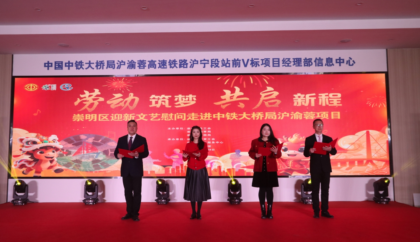“劳动筑梦 共启新程”崇明区迎新文艺慰问日前先后走进崇太长江隧道和北沿江高铁崇明特大桥项目现场,为平日奋战在建设一线的工友们带来一场文化盛宴。