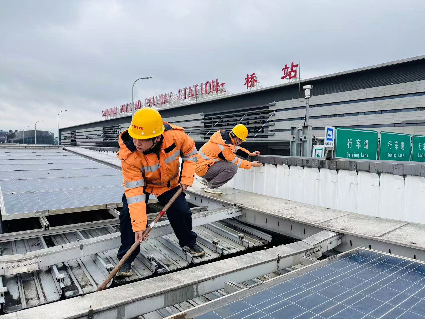 位于上海“西大门”的上海虹桥站,上海房建公寓段职工也已进入应急值守状态。虹桥高铁房建班组严格落实应急响应要求,强化现场巡视检查,组织开展虹桥站雨棚屋面扫雪除冰作业,分区分段清理屋面结冰情况,及时消除雨雪天气带来的安全隐患,确保房建设备设施状态可控、运行安全。