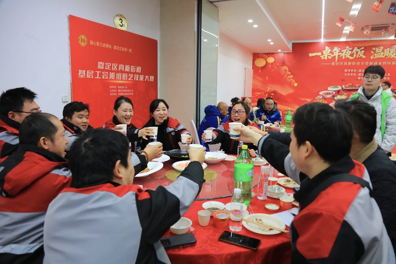年夜饭承载着人们对新年的美好期盼。2月1日下午,“一桌年夜饭,温暖一座城”真新街道关爱新就业群体新春主题活动在库锞职业技能培训学校举行。货车司机、网约车司机、快递员、外卖员等新就业群体代表齐聚一堂,提前共享一顿热气腾腾的年夜饭。