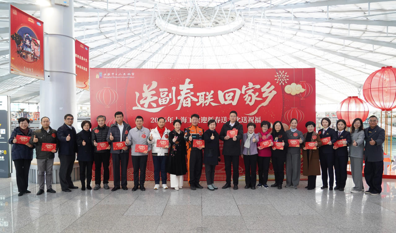 2月2日,2026年春运正式拉开帷幕。上海南站候车大厅内人流如织、暖意融融,在候车大厅一角,春联铺展有序,福字格外醒目,由上海市总工会指导,上海市工人文化宫、徐汇区总工会共同举办“送副春联回家乡”上海南站专场活动启幕。吴尔愉、陶依嘉、柴闪闪、马海燕、张雄伟、殷仁俊、钱建华、王海斌、宋增光、尚艳华、冯斌、马翠平、仇晓华、周佳等劳模先进走进上海南站,将春联和福字送到返乡旅客手中,为忙碌的归途增添了一份浓浓的年味与温情。