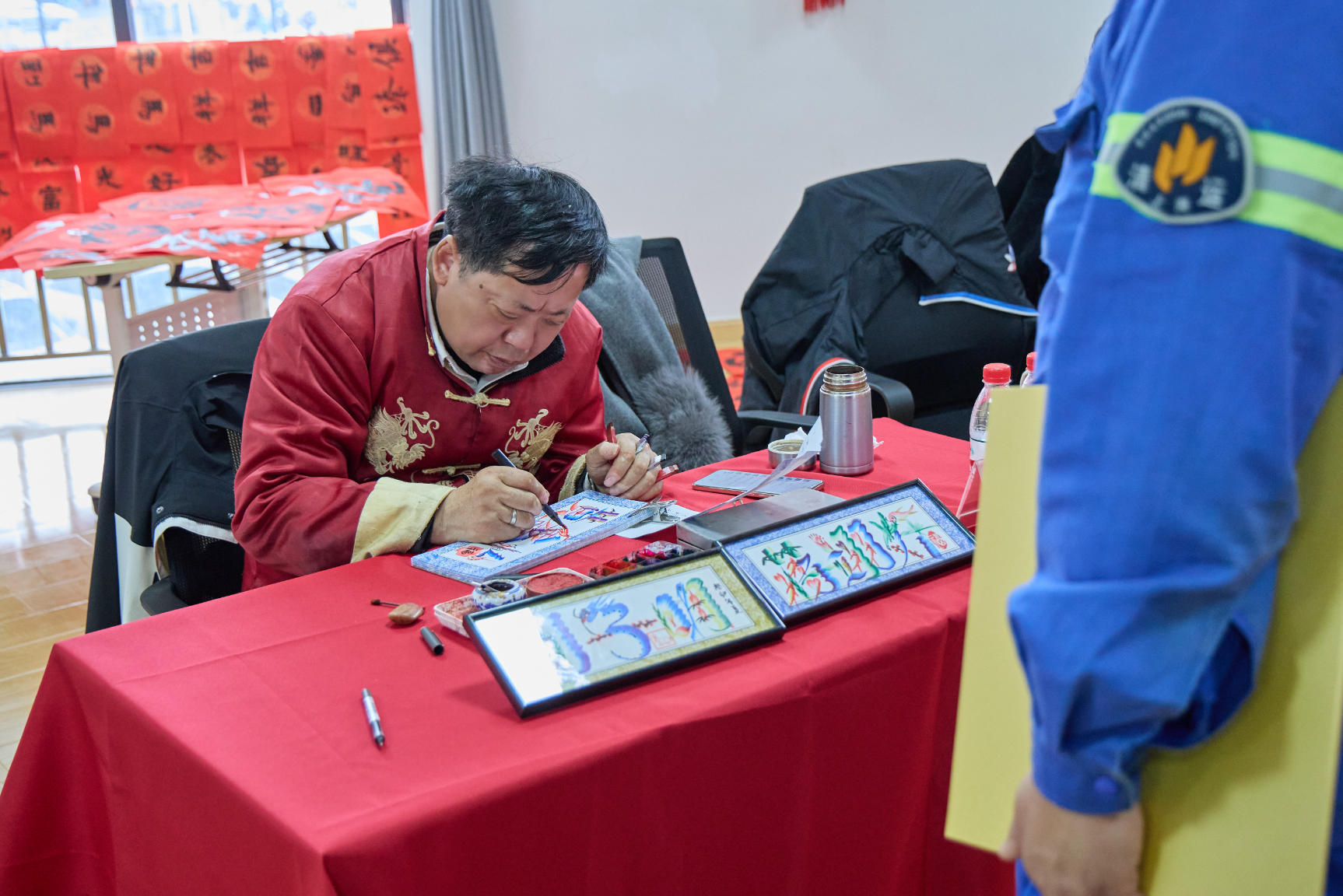 区人大常委会副主任、区总工会主席朱伟红一行为职工代表们送上年夜饭大礼包、温暖大礼包、年货大礼包等新春福利大礼包,每个礼包中都是对环卫工人们的满满新春祝福,每份心意都承载着对环卫工人们的崇高敬意。活动现场暖意融融,区总工会配送的写春联福字、非遗文化展示、年画剪纸等民俗活动热闹开展,便民理发、幸福直通车等服务贴心到位,让环卫工人们沉浸式感受传统年俗的魅力。