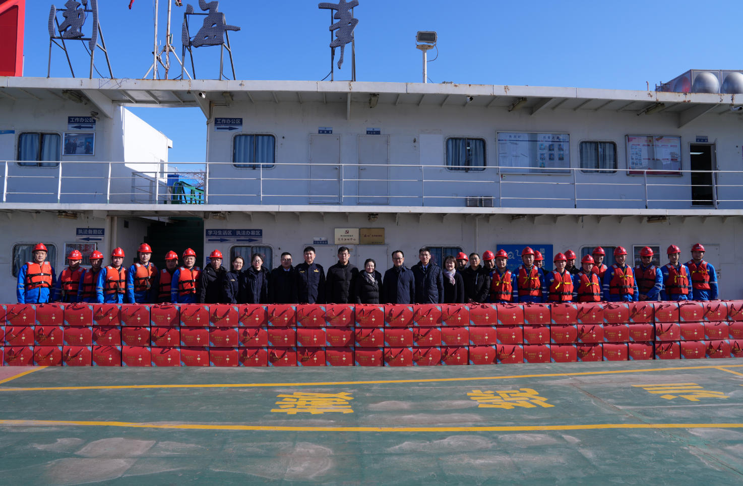 活动伊始,慰问组一行登上“振华17”轮与“振华20”轮,将温暖直接送至船头。慰问组与即将在节日期间值班的船员亲切交流,询问大家的工作与生活状况,并对他们在春节期间坚守航运一线、放弃与家人团聚的奉献精神表达崇高敬意与诚挚慰问。随后,近200份饱含心意的慰问礼包陆续发放到船员手中。船员们纷纷表示,他们将把这份感动转化为动力,以更饱满的热情守护水上安全。