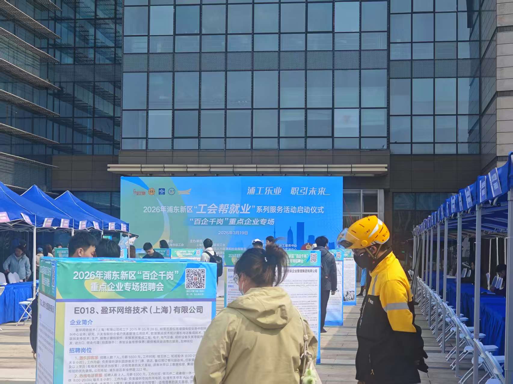 3月19日下午,2026年浦东新区“工会帮就业”系列服务活动启动仪式暨“百企千岗”重点企业专场大型招聘会在汇智国际商业中心举行。