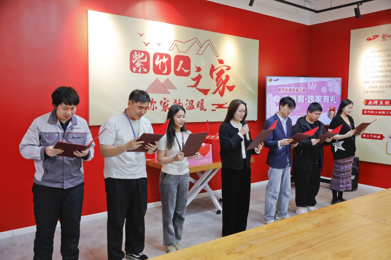 “朋友们,让我们携起手来,从我做起,从现在做起,自觉成为新型 婚育文化的宣传者、推动者、实践者,共同营造婚育友好的社会氛围……”4月10日中午,来自6家企业的职工代表郑重宣读《幸福婚育倡议书》,伴随着他们的倡议,是一份来自工会的托举——当天,“幸福婚育·娘家有礼”主题活动在紫竹高新区总工会职工之家温馨举办,紫竹高新区总工会发布了“鼓励职工婚育三年行动计划”,并向首批7名今年结婚或生育的企业职工代表赠送“娘家礼”。