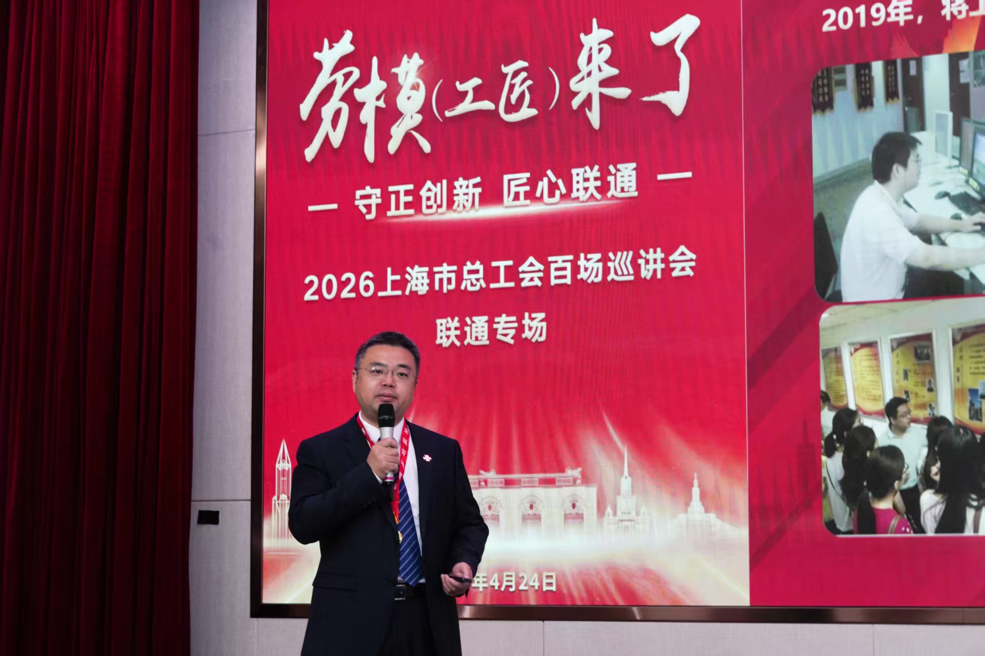 春潮浩荡,劳动荣光。4月24日,中国联通上海市分公司杨浦大楼内掌声阵阵,“五一礼赞 星光耀联通”劳模先进主题盛典在此举行。红毯上,72名劳模先进依次进场,接受献花与致敬;报告厅里,一场关于匠心与传承的对话热烈展开。