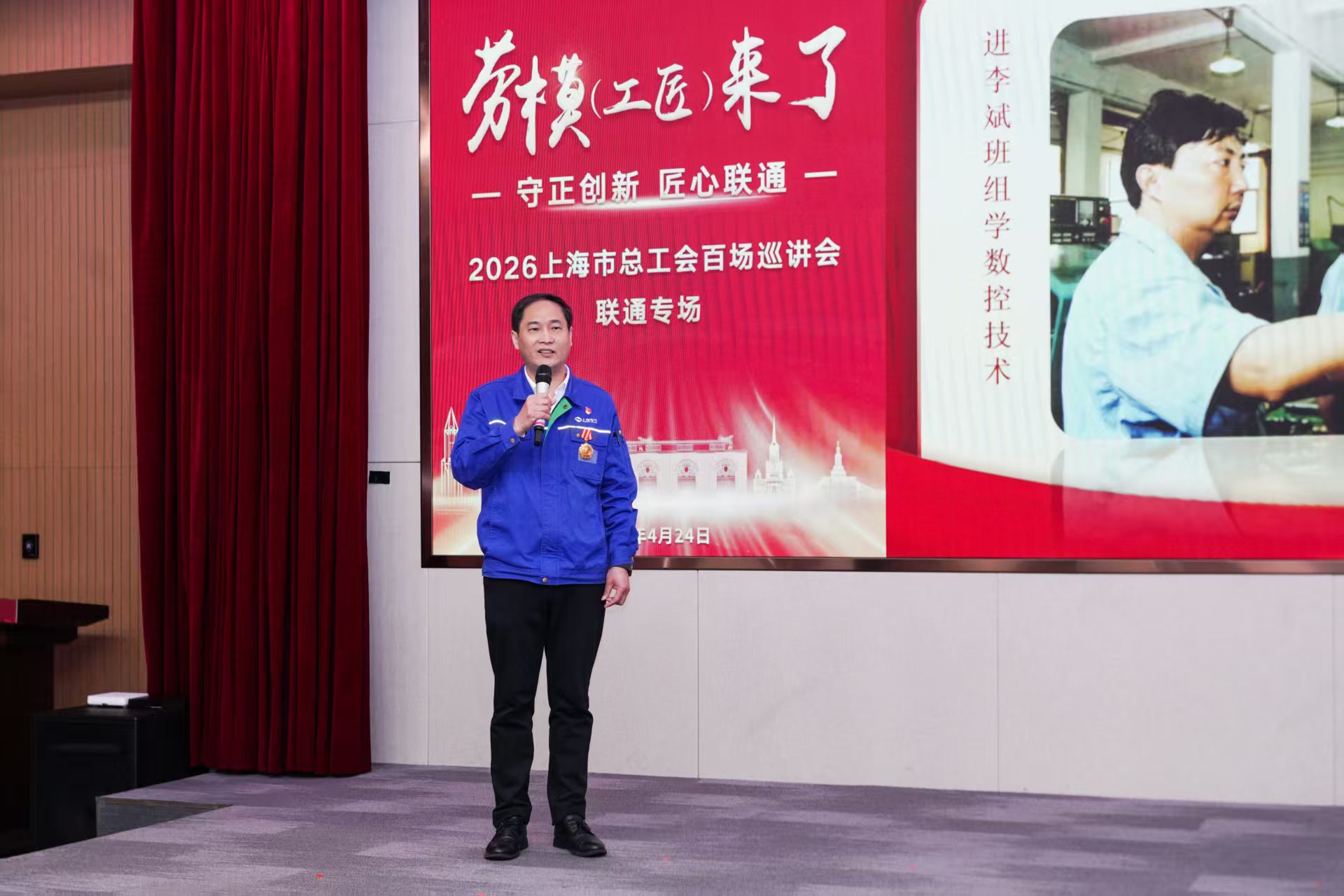 “劳模(工匠)来了”——2026年上海市总工会百场巡讲会“守正创新 匠心联通”联通专场活动,邀请了四位来自不同领域的劳模工匠登台讲述。他们当中,有全国劳模、全国劳模工匠创新工作室领衔人姚赛彬、“大国工匠”周琦炜、全国五一劳动奖章获得者沈洲以及上海市劳动模范陈勇。