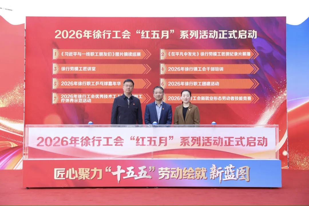 仪式中,揭晓了2026年“徐行工匠”“徐行岗位技术能手”、2026年徐行工会安全生产“金点子”;向职工代表赠送《习近平与一线职工朋友们》;发布徐行劳模工匠微纪录片《在平凡中发光》、上海工会夜校徐行教学点课程;启动2026年徐行工会新就业形态劳动者技能竞赛、2026年徐行工会“红五月”系列活动。上海市劳动模范章明高、徐行创新创业人才侯长斌从自身出发,向职工们分享了奋斗故事,传递了精益求精、追求卓越的工匠精神。
