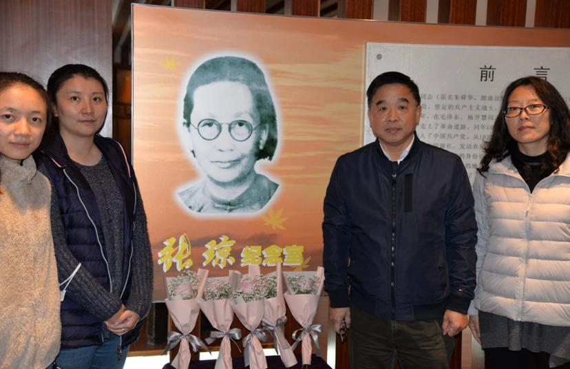撰稿组部分成员在虹口区第一中心小学张琼纪念室合影