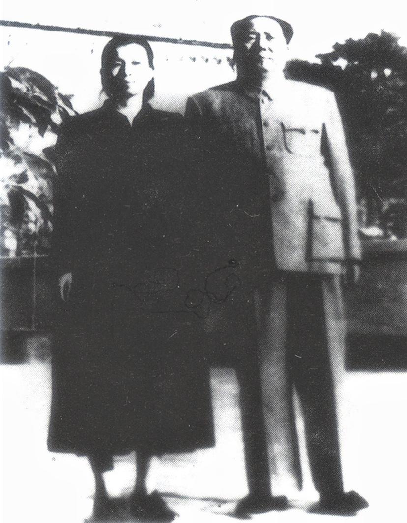毛主席和曾任上海市教育工会秘书组秘书、虹口区第一中心小学校长、虹口区副区长张琼合影