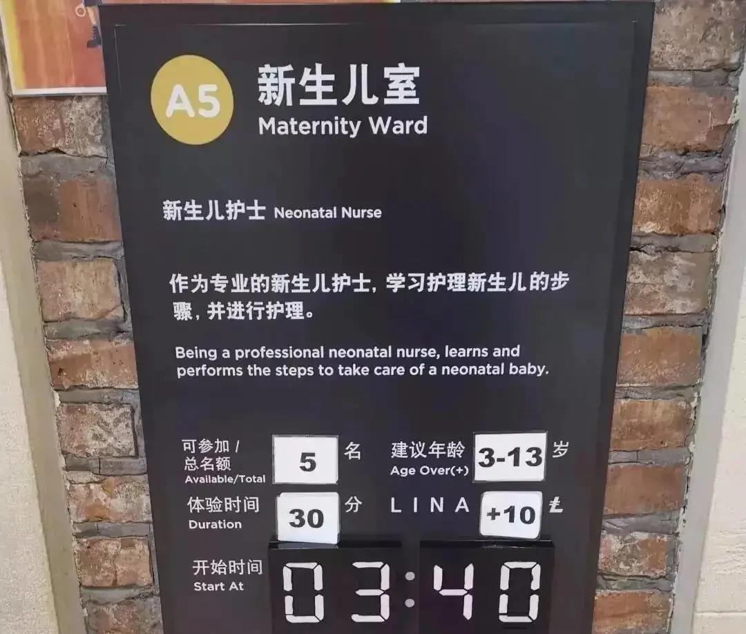 职业体验分两大类:花lina币的和赚lina币的。玩每个场馆的时候,外面的牌子上都会写清楚下一场几点开始,最多容纳几个孩子,需要付lina币,还是赚lina币。这些公众号里也可以查到。举个例子,我们一进去就玩了高铁,需要付20lina币。那接下来我们去了照顾新生儿可以赚20lina币,接着拿这20去玩考古,依次类推,先赚再用。