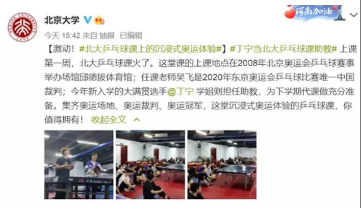 集齐奥运场地、奥运裁判、奥运冠军让网友直呼:“这是一堂拥有沉浸式奥运体验的乒乓球课!”大家纷纷表示“太羡慕了!考北大还来得及吗”?
