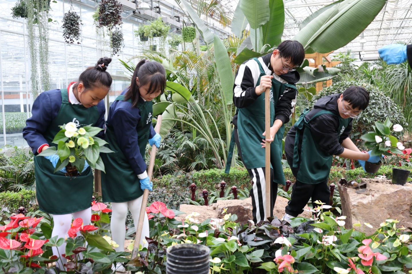 翻土、选苗、培植……五一劳动节前夕,在上海鲜花港的暖棚里,一场别开生面的劳动实践正在进行中。来自上海电力大学、上海市浦东新区建平临港中学、上海市浦东新区建平临港小学的大中小学生们,携手设计打造自己的主题园艺景观。在鲜花港园艺师的指导下,同学们穿上围裙,带上手套,挥舞着锄头,纷纷成为新晋园艺师,在热火朝天的劳动中,播种希望、收获美好。不多时,以凤梨、红掌、竹芋为不同主题的三块园艺景观灵动呈现,劳动的美丽在这一刻如鲜花般怒放……