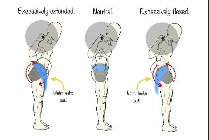 假设你的骨盆装了一桶满满的水,前倾、后倾包括左右旋转,都会让水撒出来,然后你的腰就遭殃了……