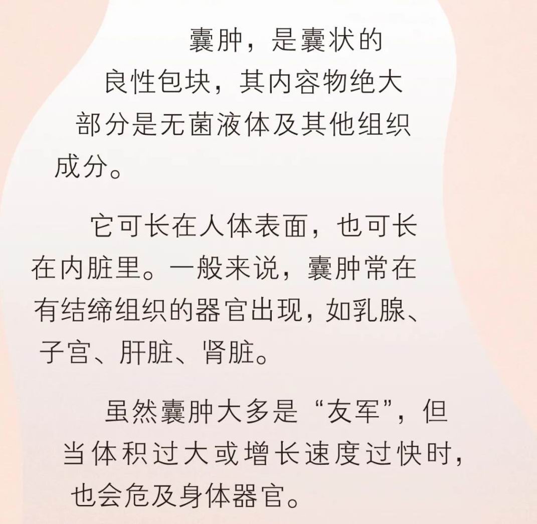 摘要: 囊肿大多数是良性的,但当体积过大或增速过快时,也会危及身体器官。长多大、多快的囊肿需要处理?