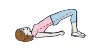 臀桥:双脚支撑地面,用臀部及大腿后部的力量将肩、髋、膝抬成一条直线。发力时呼气。保持30-40s,每组10-15个。