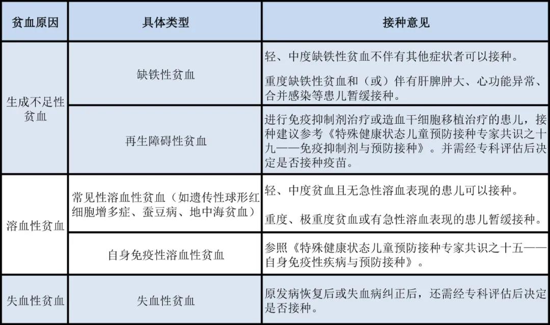 本接种建议仅针对生成不足性贫血中的缺铁性贫血和再生障碍性贫血,以及溶血性贫血中的蚕豆病和地中海贫血等。