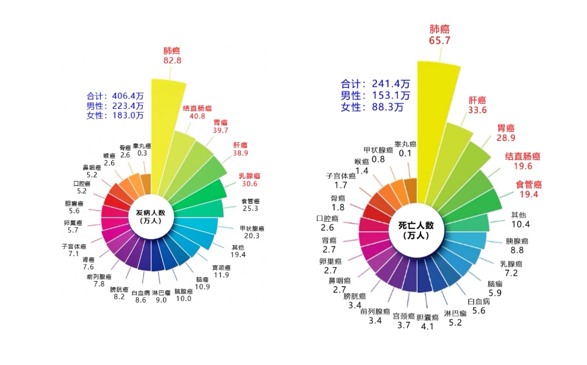 中国2016年新发癌症病例数和整体发病率以及癌症死亡例数和整体死亡率