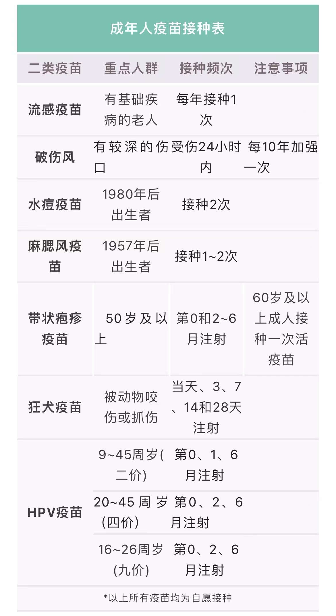 建议成年人接种的疫苗
