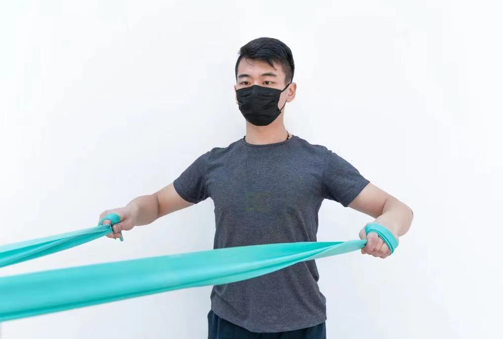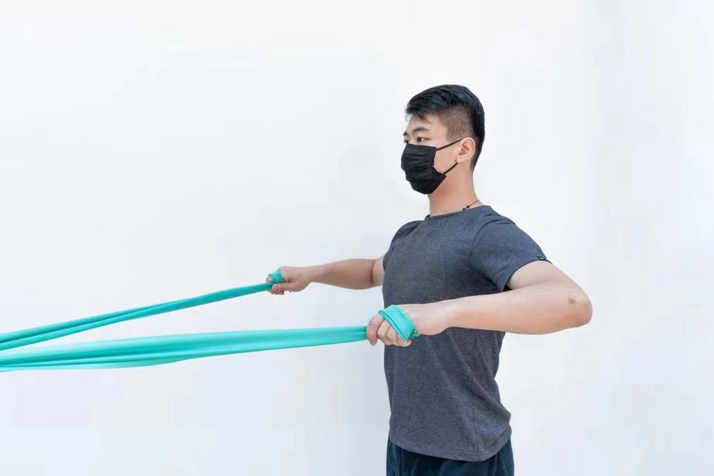 如果条件允许,可以利用弹力带进行对抗训练,弹力带的力量更可控,可以更加准确地锻炼到目标肌肉,并且可以进行更多肌群的锻炼。没有弹力带用长一点的毛巾也可以。