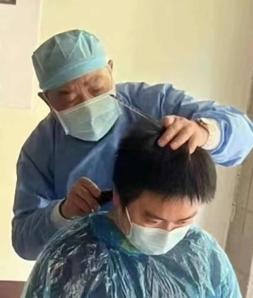 小区居民的“头”等大事也牵动着姚主任的心。特殊时期,拿了一辈子手术刀的他亲自操刀,为居民理发。一位80多岁的老先生原本白发凌乱,在姚主任娴熟的刀法下修剪干净,一下子感觉神清气爽。疫情期间,姚主任发动小区志愿者为100多名居民理发,亲自操刀服务30来位居民。