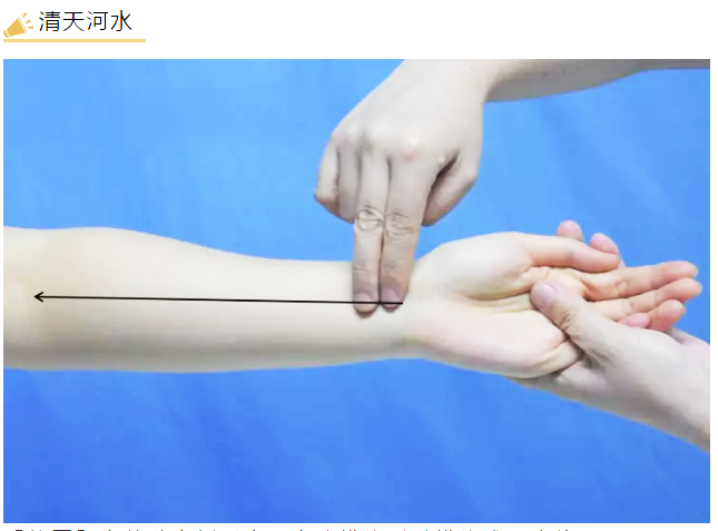 操作:以食、中二指指腹,自肘关节推至掌根,称退六腑。