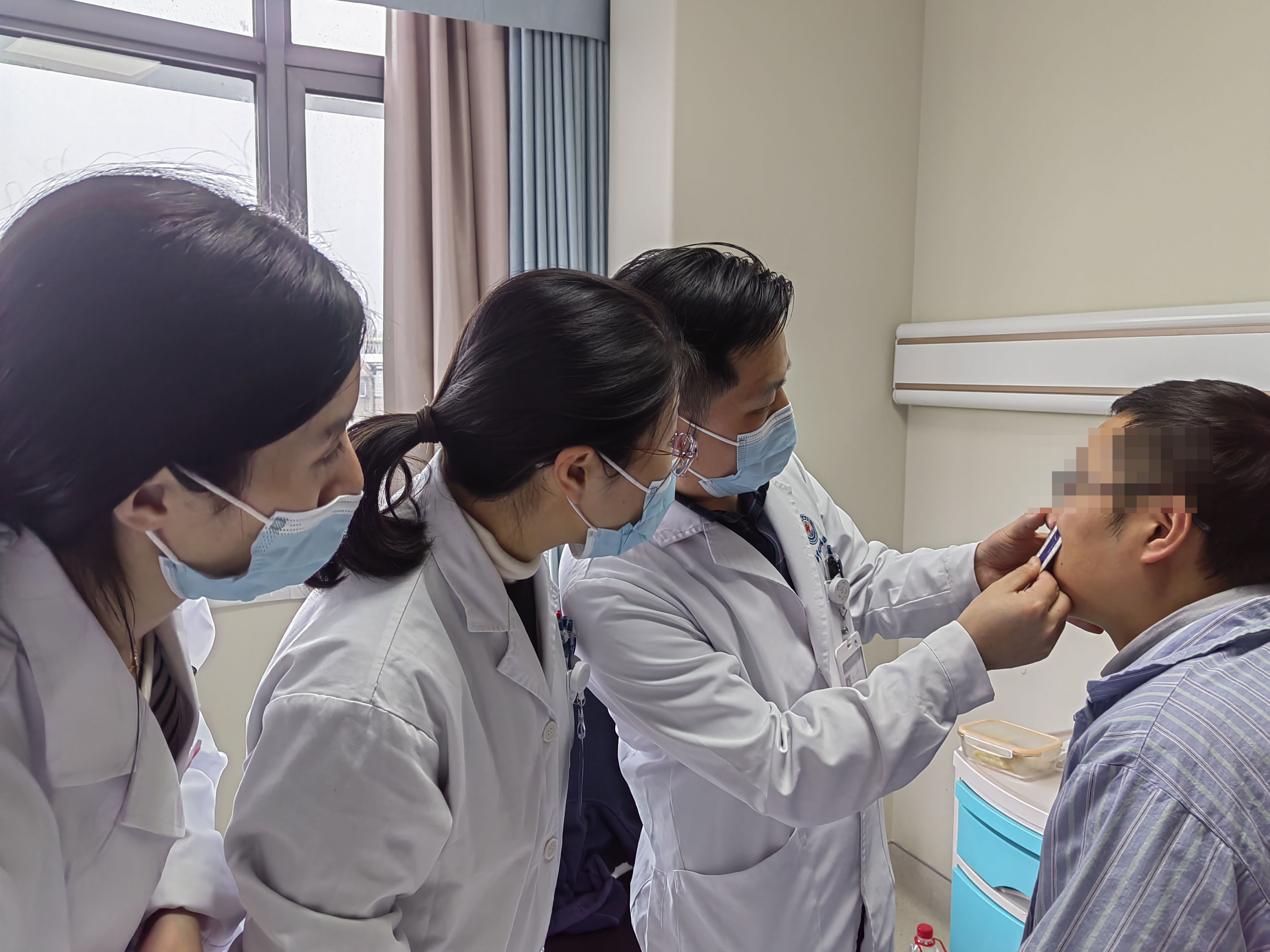 早在8年前,上海市皮肤病医院光医学团队在学科带头人王秀丽教授的带领下就将传统中医疗法的梅花针与光动力治疗相结合,成为了皮肤癌诊疗的一大特色。在常规使用光敏剂涂抹于瘤体表面之前,医生会使用梅花针敲击皮损处,梅花针的敲击使得皮肤表面出现如雨点般的细小伤口,这样能使此后药物吸收得更深、更充足,从而强化光动力治疗的效果。使用梅花针辅助光动力疗法的疗效明显优于单纯使用光动力治疗的疗效,前者可以大大降低患者治疗的次数,因此大大减轻了患者的经济负担,为国家也节约了大量的医疗资源。