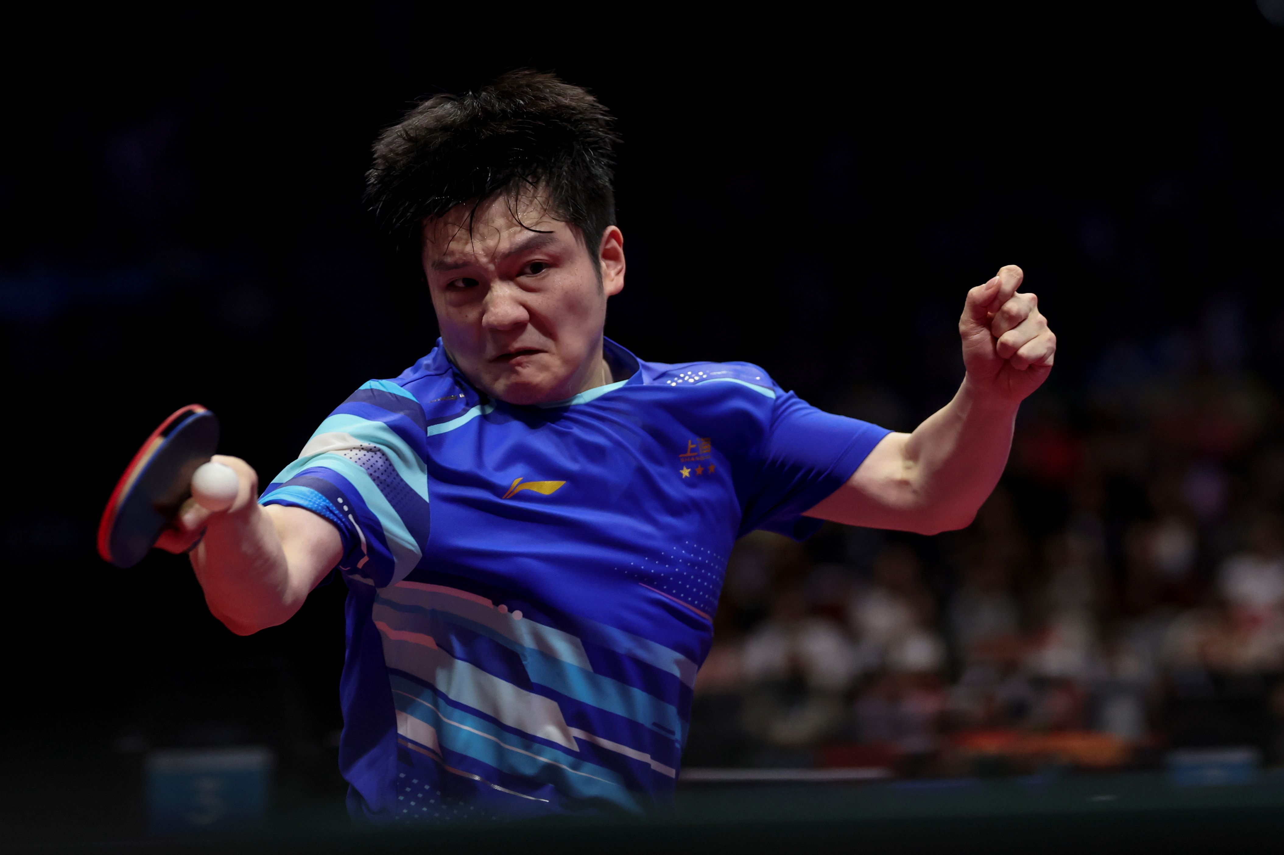 头图为樊振东在比赛中奋力挥球,为了上海的荣耀,他和所有运动员都在拼尽全力。王佳斌 摄影