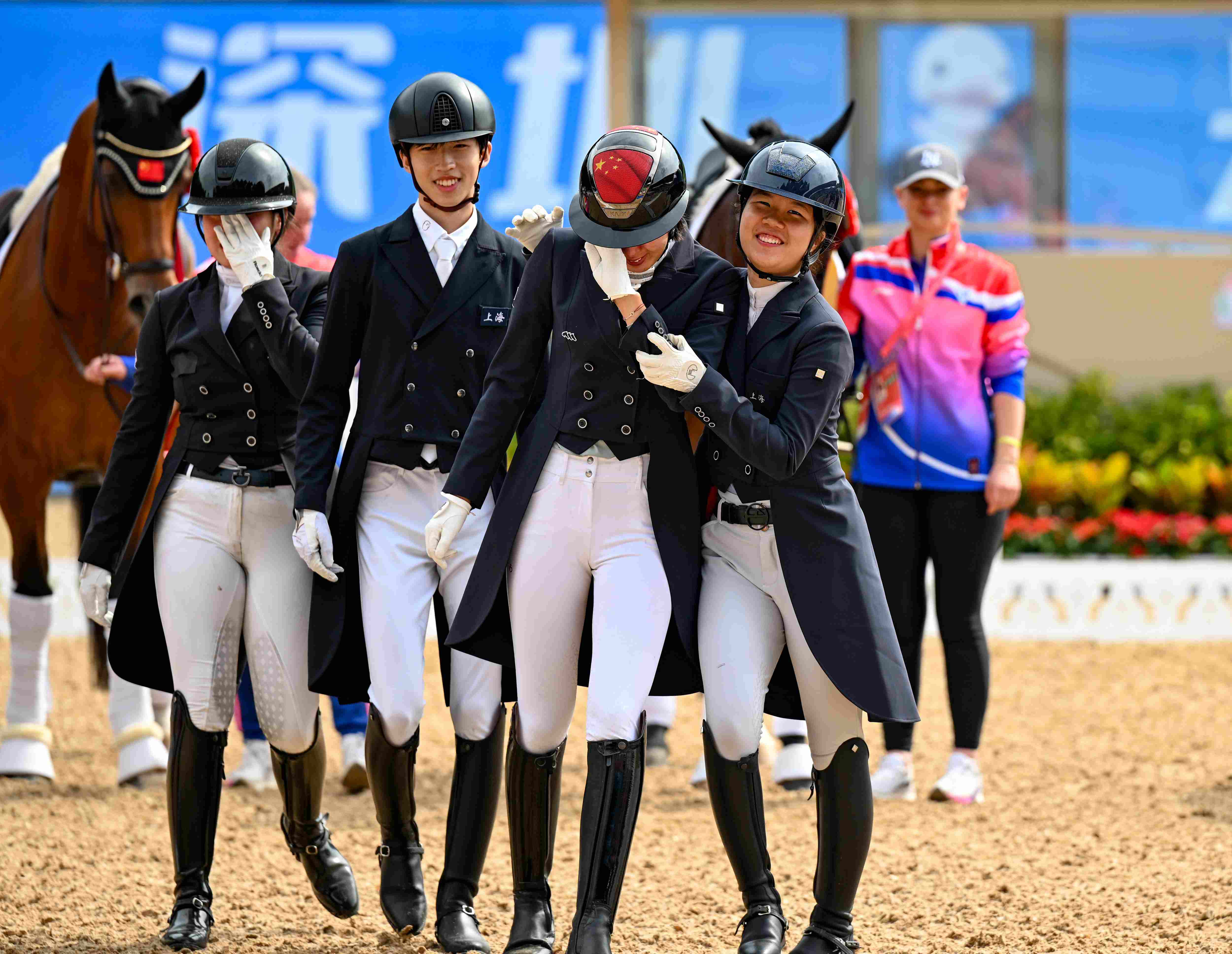 11月10日,第十五届全国运动会盛装舞步团体决赛(个人资格赛)在深圳落幕。由四名年轻棋手徐墨菲、吴悦、顾展兆、饶嘉怡组成的上海队,凭借出色的整体表现,以202.470分成功摘得该项目团体冠军。新疆队以202.088分获得银牌,卫冕冠军广东队以201.176分拿到铜牌。