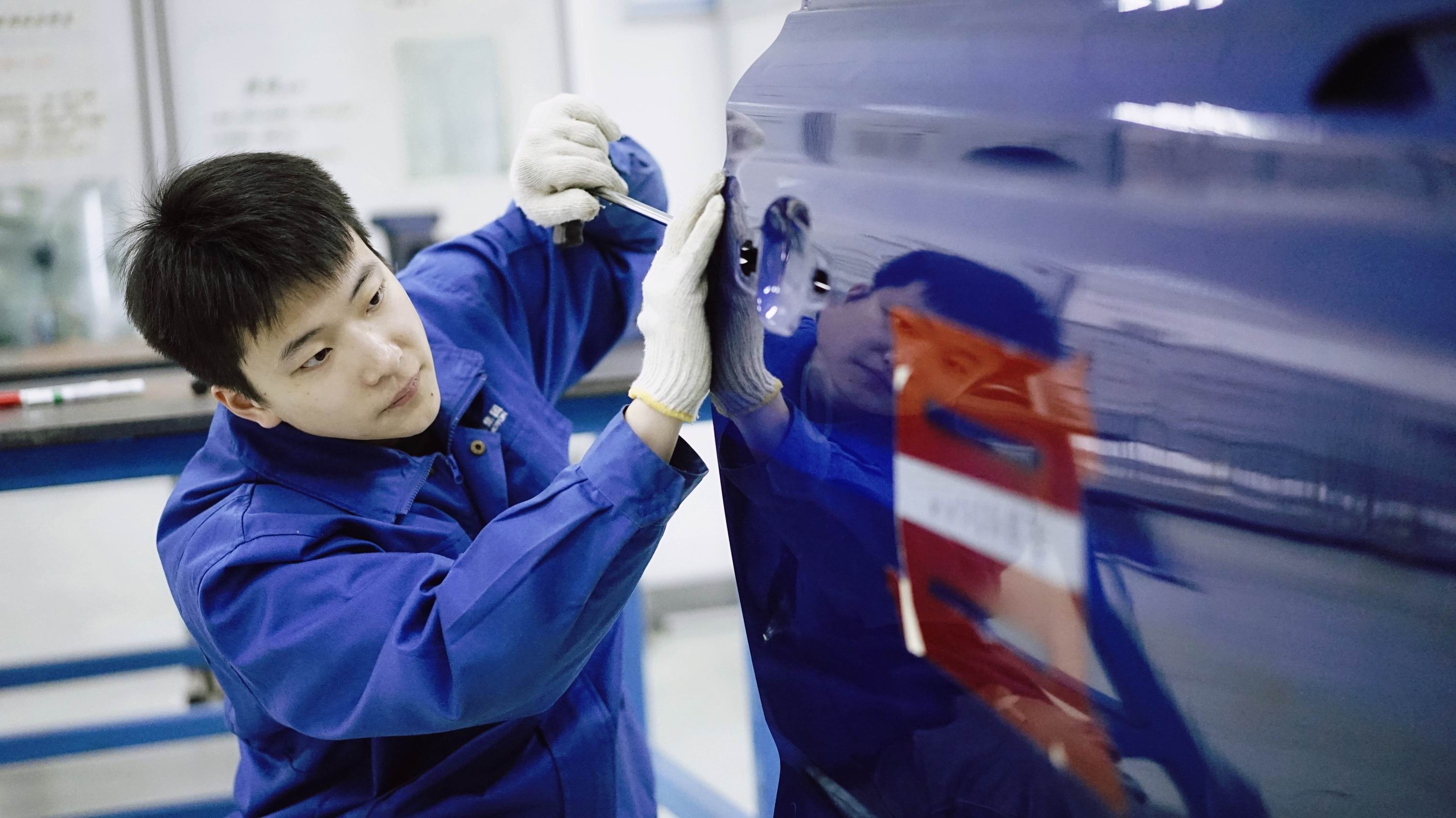 在业界,杨山巍这位外形阳光俊朗的“后浪”已小有名气。2017年,时年20岁的他参加了第44届世界技能大赛车身修理项目的比赛,最终以领先第二名3分的绝对优势获得该项目自中国参赛以来的首枚金牌。学校毕业后,杨山巍凭借傲人的履历叩开了上汽集团乘用车公司的大门。