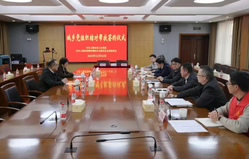 12月22日,上海市总工会党组与崇明区横沙乡永胜村党总支开展城乡党组织结对帮扶签约。市总工会党组成员、副主席赵德关,崇明区副区长金彪,横沙乡党委书记曹俊,乡党委副书记陶政江,副乡长顾伟达等出席。横沙乡党委委员倪金金主持签约仪式。