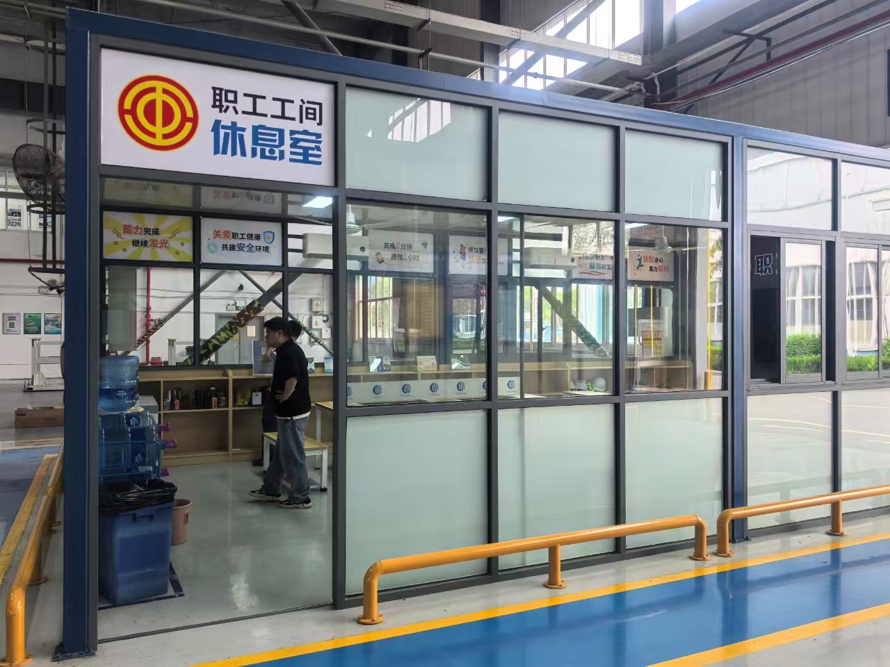 基础保障的“细节升级”同样暖心。西联公司为环卫工休息室添置了智能饮水器与空气净化器,解决喝水难与扬尘问题;百康电子元件公司休息室为职工定制专属水杯;柯马工程休息室配备了大屏电视,让职工休息时也能学习知识。