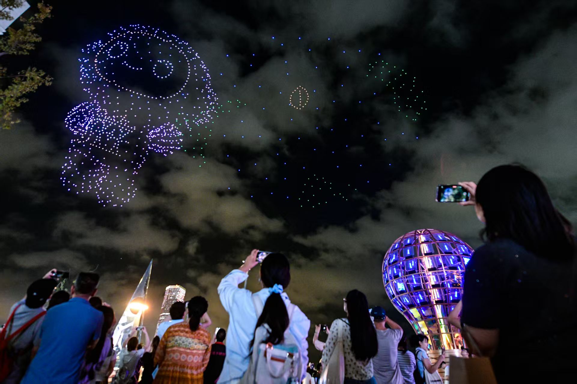 无人机光影秀打出的“AI西岸”的字幕。劳动报记者 颜筱依 摄影