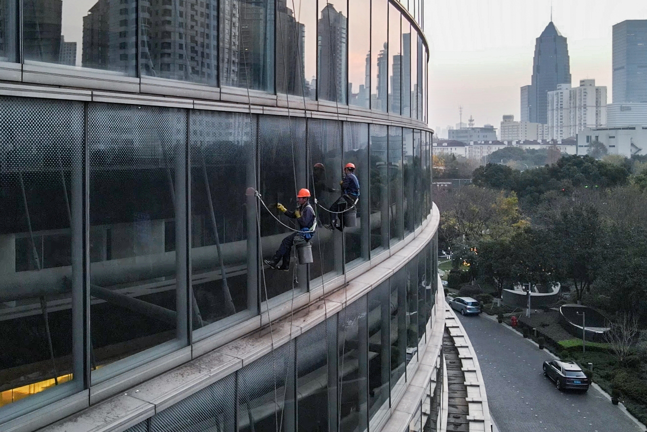 上海中心大厦地上127层,分9个清洁区,从上到下完整清洗一遍,正好3个月,1年清洗4遍。新年伊始,“蜘蛛人”又开始了新一轮的作业。“希望用我们的劳作,让游客看见更美的上海。”