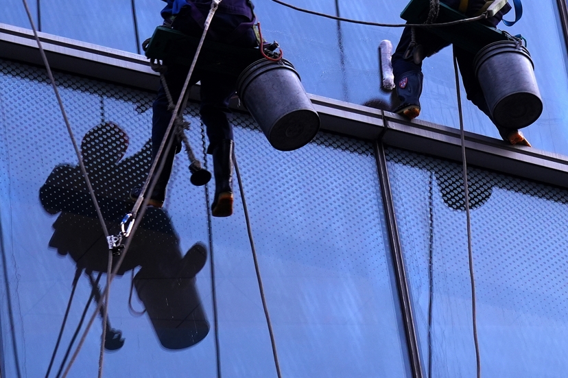 当游客乘坐每秒18米的超高速电梯抵达118层“上海之巅”,透过锃亮宽敞的玻璃领略浦江两岸美好风光时,少有人注意,一群人以身体“悬空”的姿态,一次次重复着枯燥的劳动,为摩天大楼“洗澡”——他们,是高空外墙清洗工,又被大家称之为“蜘蛛人”。