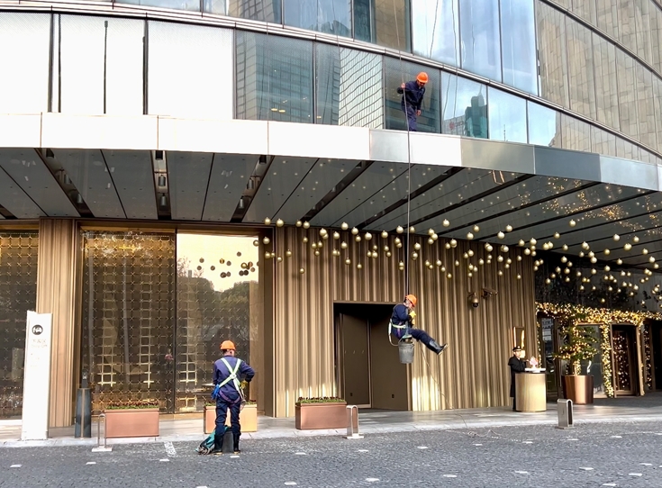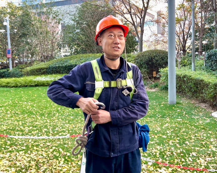 令人揪心的是,这些不确定因素,除了影响工作进度,还有可能遭到客人的投诉。一个电话打来,他们就得立马停工,从幕墙外“消失”。即使穿梭在写字楼里,他们也只能走固定的后勤通道,乘坐专用的后勤电梯。但“蜘蛛人”并不计较这些,“清洗到观光层,看到游客跟我打招呼,竖起大拇指,就会觉得我这份工作还挺有意义的。”