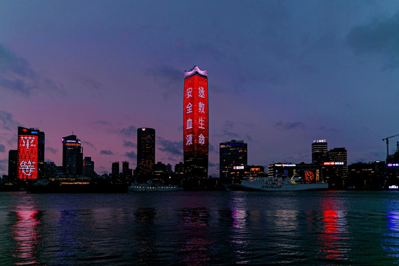 自2015年起,上海每年都会在世界献血者日通过亮灯的方式致敬献血者。今年,上海参与到由中国输血协会举办的“爱点亮中国”行动中,与全国44个城市同时亮灯。