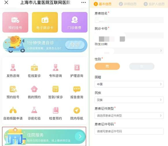 因为孩子高烧不退,王先生带孩子来看呼吸科门诊,经过检查,门诊医生发现孩子可能得的是细菌性肺炎,有必要住院治疗。她立刻开出电子入院单,此时王先生马上就可以在手机上进入儿童医院互联网医院首页,点击住院服务,选择就诊人与就诊卡号,看到了住院预约结果——周六。到了周六当天,他马上在线办理入院登记,在线缴纳住院预交金就顺利来到呼吸科病区住院,从头到尾一部手机搞定,省去了排队办理入院的麻烦
