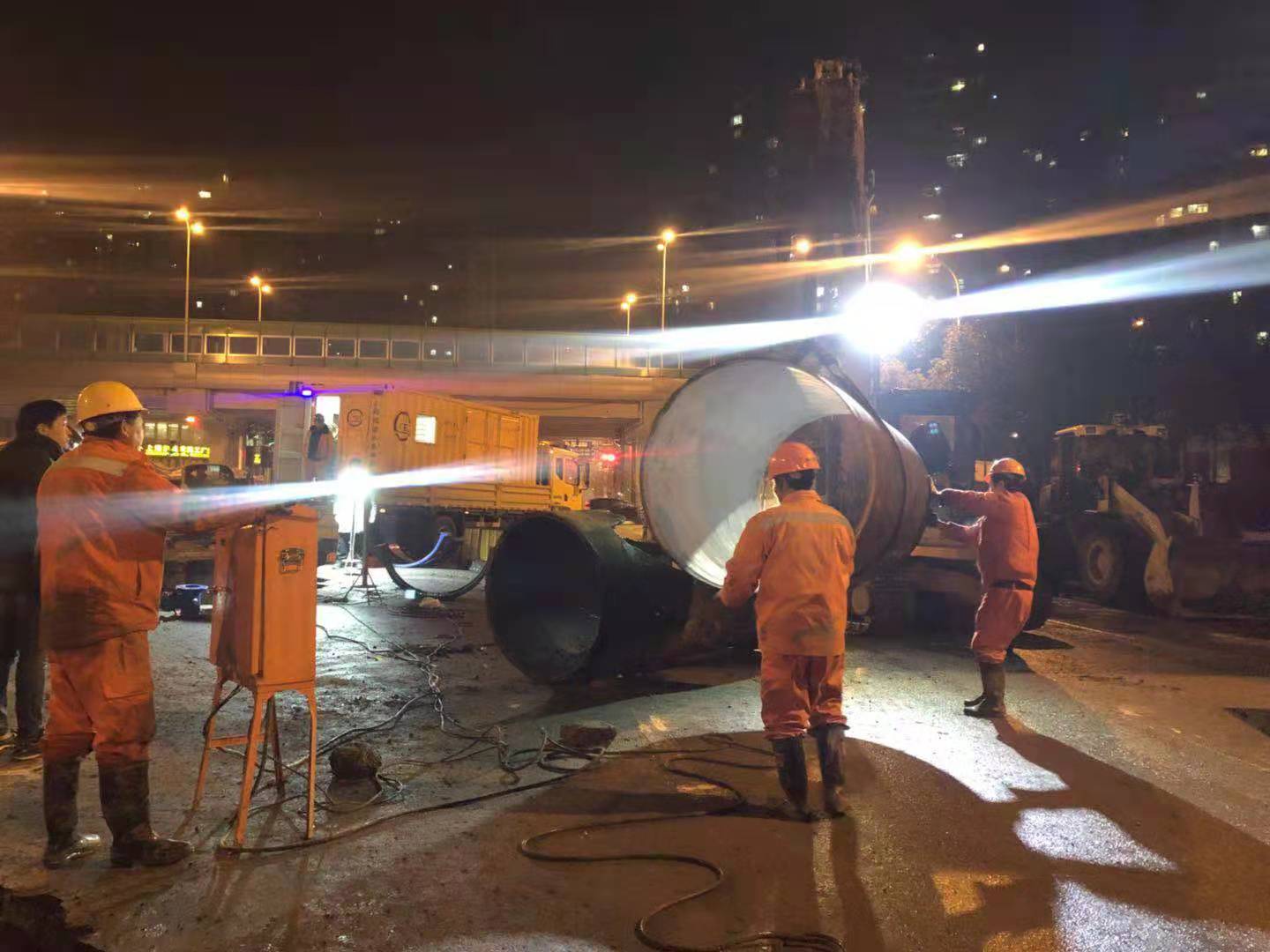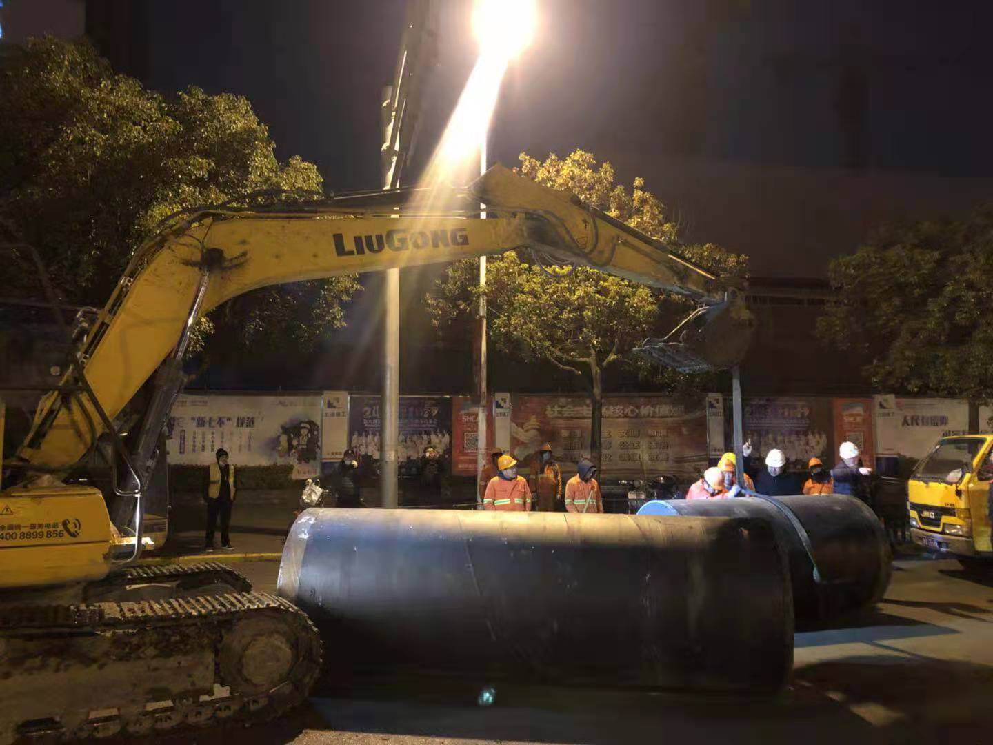 1月2日下午14时许,西藏南路中山南一路的一个根1.2米输水管发生爆裂。由于该处为过江的主要干道,为了不影响明天早高峰道路的正常通行,近百名职工连夜抢修,在永不眠夜里争分夺秒地实现“管通路畅”。