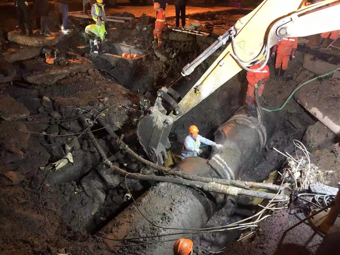 为了不影响明天道路的正常通行,抢修必须争分夺秒。据介绍,抢修人员在对破裂管道进行切割后,要仔细对周边予以清理,再将其吊上来,并在原位安装新管道。历经开闸、冲洗等步骤后方能完工。