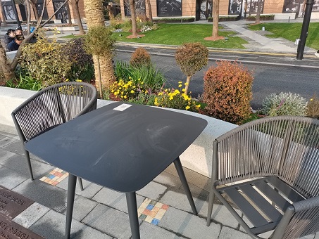 这是负责苏州河静安段公共空间贯通提升工程的上海市政总院精心打造的景观,他们将诗歌朗诵作品设计了二维码篆刻在座椅、桌上等处,游人轻扫,就能进入诗歌朗诵页面,选中相应作品,音频播放,悠扬的朗诵声便在耳畔响起,颇有一番诗意。