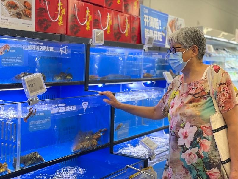 “帮我挑一只大点的波龙。”周阿姨仔细挑选着波士顿龙虾,“就这只好啦!”