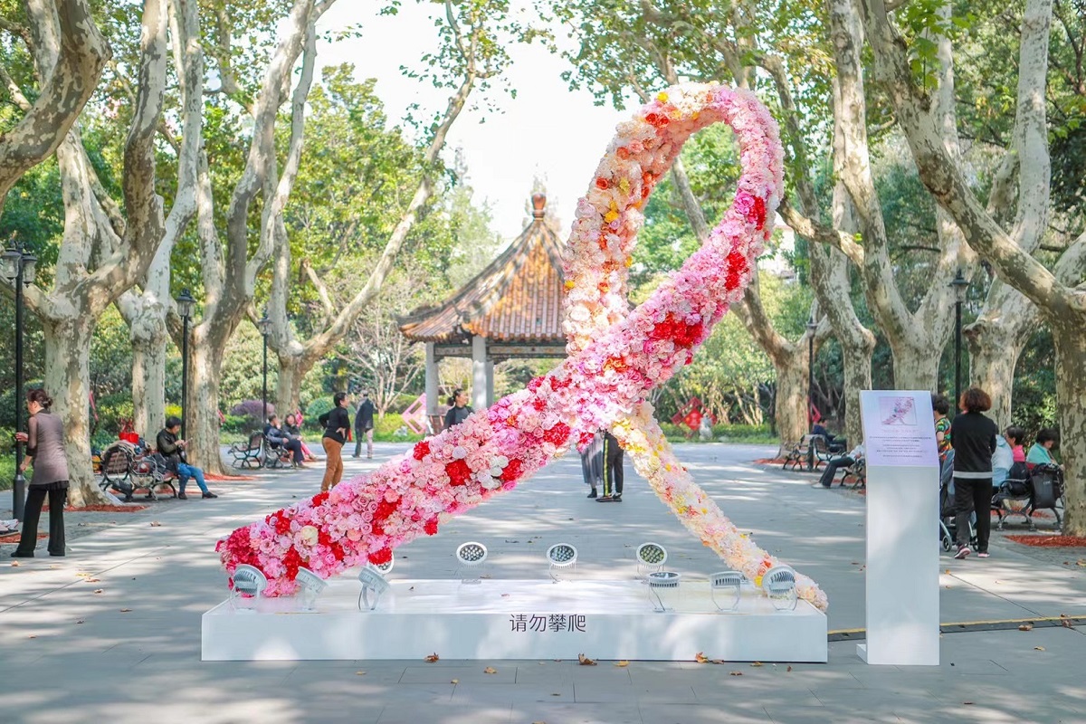 为进一步传播“粉红丝带”的理念,一系列粉红丝带装置也陆续亮相TX淮海|年轻力中心、衡山坊、襄阳公园、复星艺术中心等诸多地标及市民生活场所,唤起全社会对乳腺癌防治的关注。除了“粉红装置”,“粉红车站”、“粉红列车”也陆续出现、穿梭在上海的地铁路网中,将乳腺癌防治意识带给这座城市中更多奔波的人们。