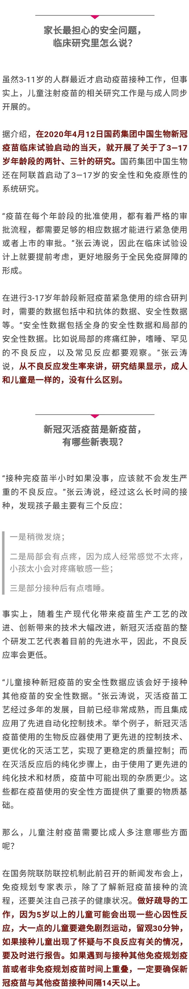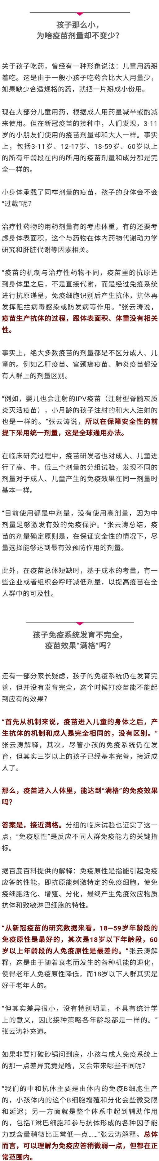 近一段时间,越来越多的3-17岁孩子接种了新冠疫苗,一些家长心里会犯嘀咕:孩子的疫苗剂量为啥和大人一样?究竟啥反应是正常的?来听听国药集团中国生物首席科学家张云涛怎么说→