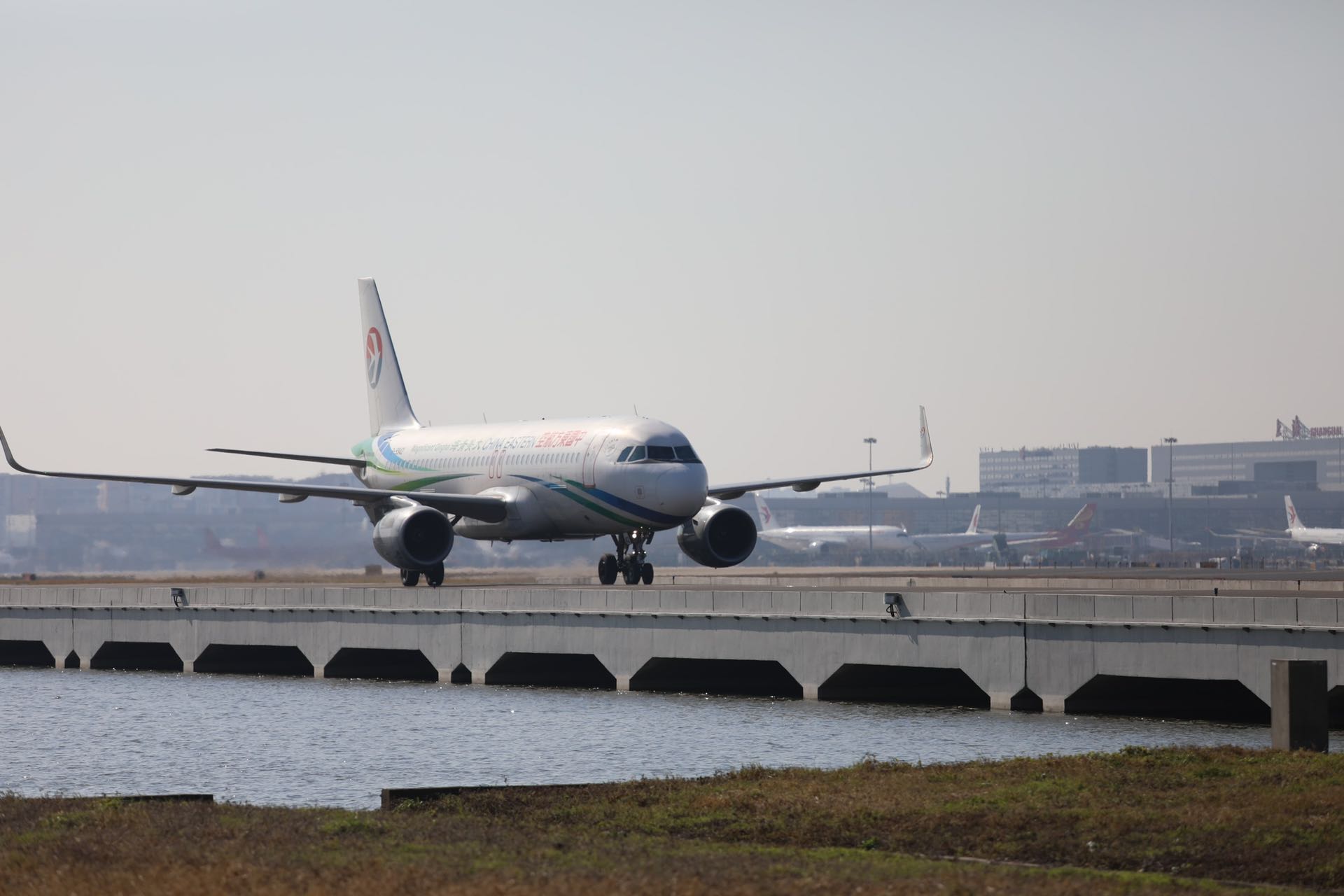 作为国内首创,项目施工建设和运行管理面临无先例可循的难题。为避免航空器绕滑对起飞航班产生目视干扰,虹桥机场在西跑道两端各建设了一座高6米、长240米的目视遮蔽物。鉴于国内其他机场没有先例,在吸取国外先进经验基础上,虹桥机场立足自主创新,通过大量数值仿真、风洞试验和碰撞试验,技术上攻克了“飞行区内建设大体量构筑物”“金属物体对机场电磁场干扰”“风洞试测可抵抗17级以上台风并满足易折要求”三大难题,形成国内首创的目视遮蔽物设计、施工、验收及校飞成套技术,填补了国内行业空白。